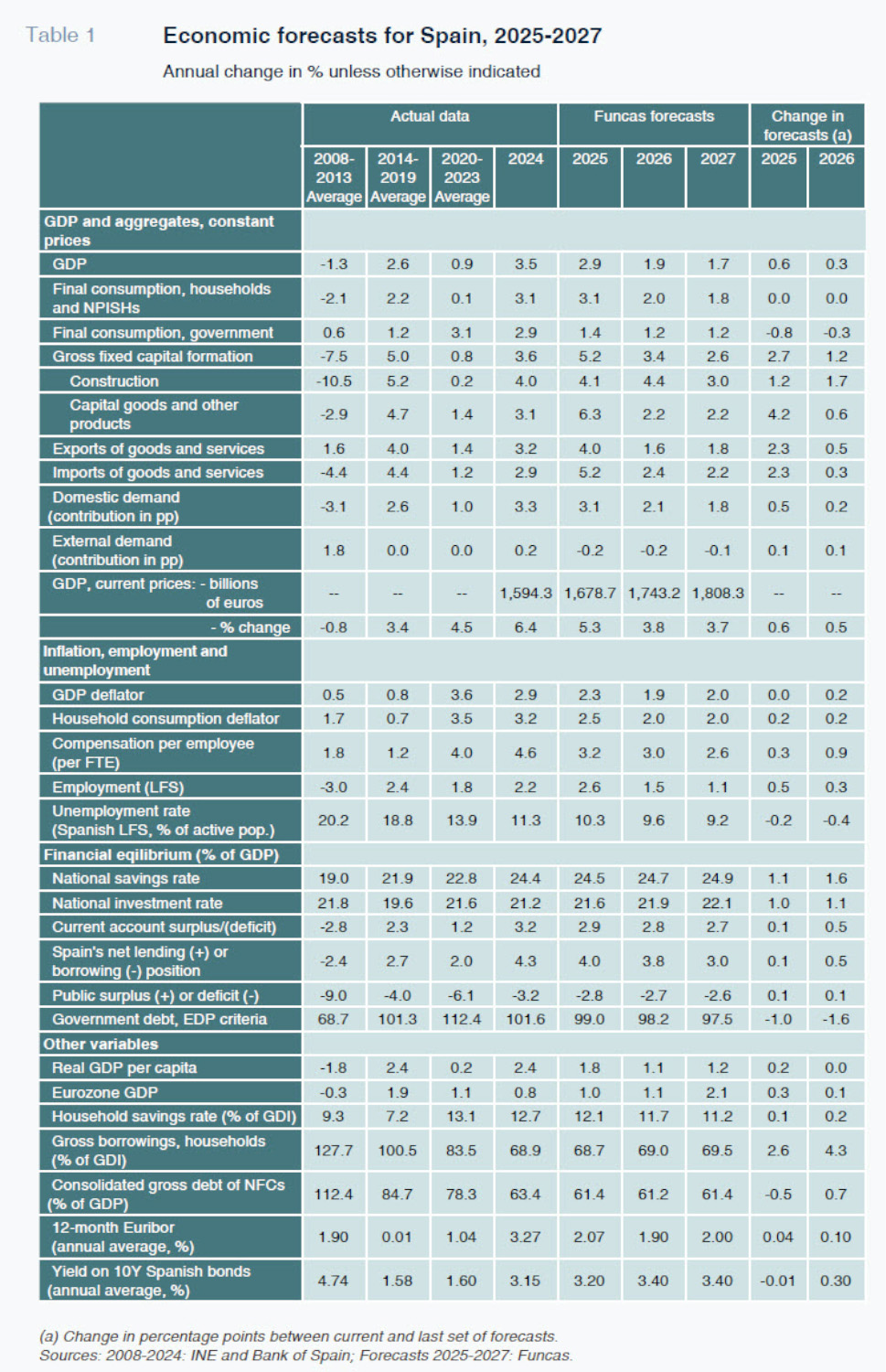 The purpose of this paper is to examine under what conditions the current growth cycle could continue in the near future. To that end, it starts from an analysis of the factors that have driven the economy in recent years despite the deterioration in the international environment on account of escalating trade tensions, among other factors (Torres et al., 2025). Based on that analysis, we share Funcas’ projections for 2025-2027, before highlighting the key medium-term challenges and looking at the risks, both upside and downside, implicit in these projections.