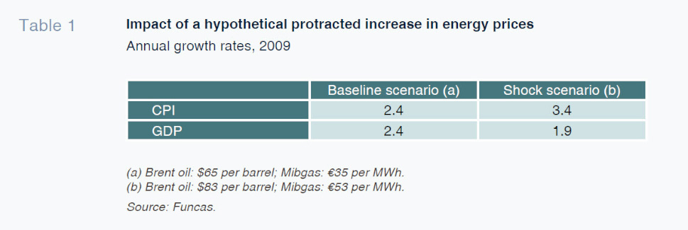 Against this backdrop, the eruption of the conflict in Iran ushers in a new threat to the goals of sustaining growth while curbing inflation. This paper presents our baseline scenario for the Spanish economy for the next couple of years, as we envisaged it before the onset of the hostilities in the Middle East. It then analyses the impact on inflation and GDP of a sustained increase in energy prices, the main channel through which the armed conflict is likely to affect the real economy.