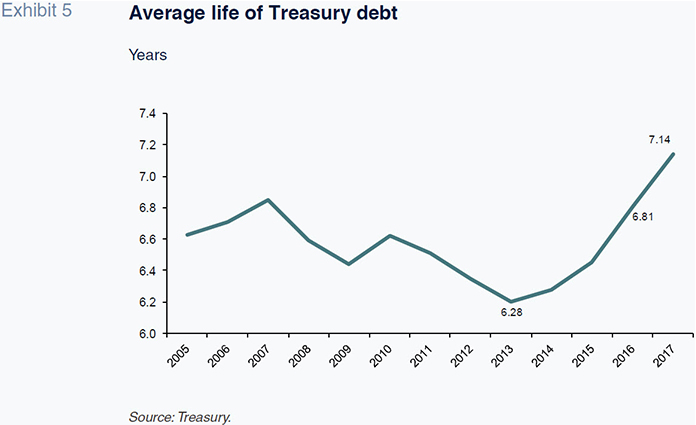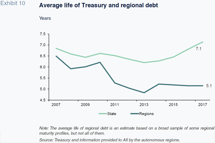 In addition, although only residually important, the fact that the Treasury has sought to take advantage of low interest rates to lengthen the average life of its portfolio is also a factor in the interest rate differential relative to the autonomous regions. Indeed, most autonomous regions have not lengthened the life of their debt stock, which has remained stable over the last four years, at slightly over five years. This is essentially because the bulk of regional debt over recent years has been taken on via State funding mechanisms with a stipulated average life of 6.5 years, meaning that the average life of regional debt has not increased in contrast to most European public issuers.
