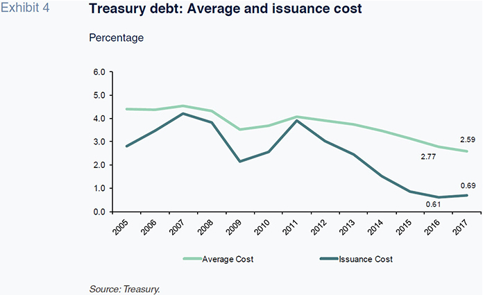 [7]. Overall, type-2 autonomous regions have a better credit rating than type-1 autonomous regions, which is consistent with the lower average cost of funding enjoyed by the former until 2012. However, as shown in Exhibit 8, this trend has reversed dramatically and by the end of 2016, the average funding cost for type-1 autonomous regions was slightly below 1%, while the cost for type-2 autonomous regions reached 2.4%.