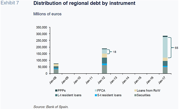 [5]. Overall, the series of support measures adopted by the government is the main factor explaining the major reduction in the average cost of regional debt. Especially considering that, as of the second-half of 2017, some 55% of all regional debt is now held by the Regional Financing Fund (FFCA).