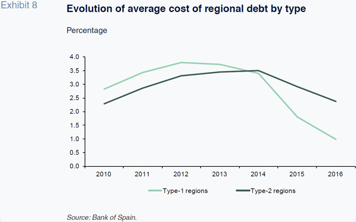 Regional participation in State financing mechanisms does not in itself imply a reduction in the average cost of regional debt above and beyond the Treasury. In fact, this would not have been the case had the government decided to maintain its initial approach of applying a small spread on Treasury financing costs