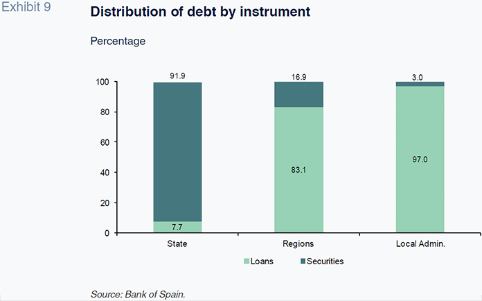 The main factors contributing to this drastic decline in regional financing costs – discussed in more detail below – are: the involvement by most autonomous regions in State financing mechanisms offering subsidised interest rates; the high proportion of loans in regional debt portfolios; and – to a lesser degree – the fact that, in general, the autonomous regions have not been able to take advantage of the current low interest rate environment to extend the average life of their portfolios.