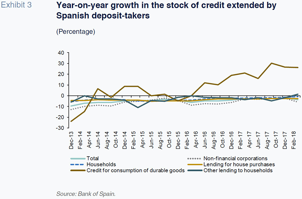 Abstract: Since emerging from recession, Spain has experienced significant growth in consumer lending to households. This expansion of credit can be attributed to demand side factors such as the consolidation of the economic recovery (