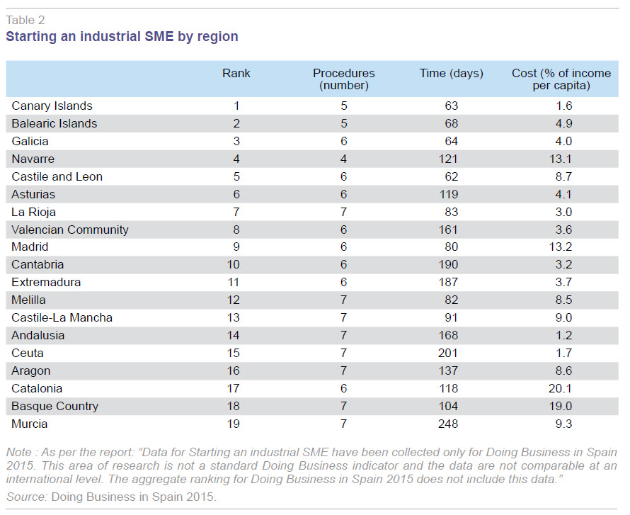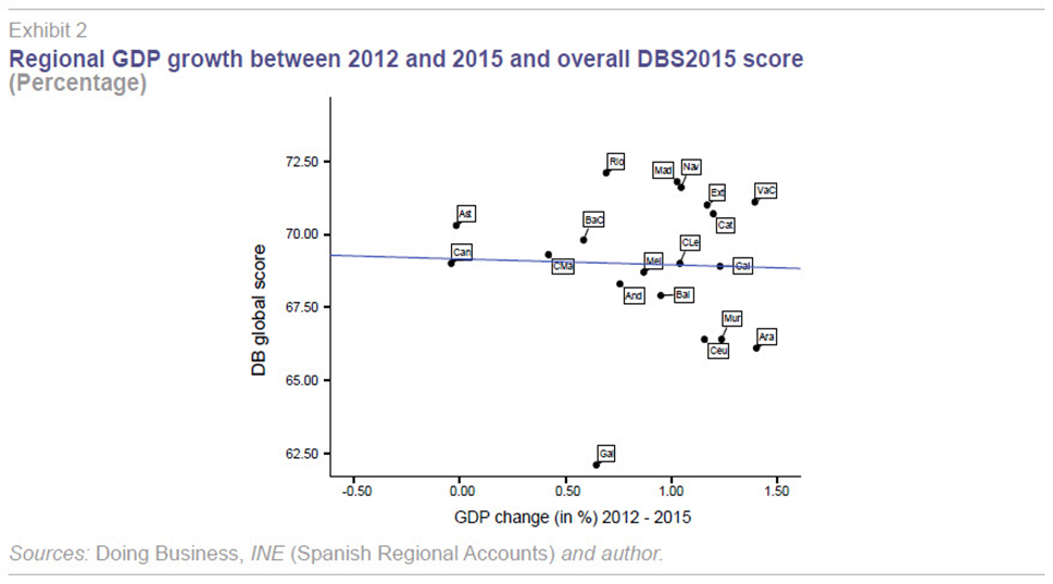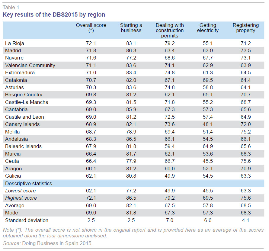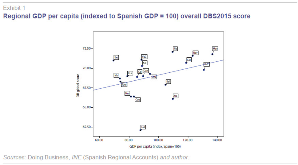 It is possible that questions such as these prompted the Spanish government to ask the World Bank to compile the Doing Business report on regional business regulations in Spain published in 2015 (World Bank, 2015; hereinafter, DBS2015). The goal of this paper is to outline the key results of that report and analyse them in relation to variables deemed representative of regional economic activity in Spain. This paper does not purport to provide answers to the questions raised above but does express certain opinions aimed at helping the reader assess to what extent the DBS2015 can do so.
