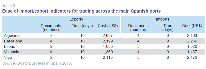 The study is rounded out with a comparison of the different requirements for importing or exporting goods through Spain’s five main ports; these are shown in Table 3.