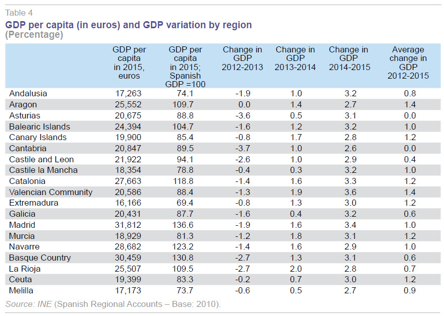In addition, in the specific case of Spain, as recently noted in SEFO (2016), the gap between the richest and poorest regions is set to widen in 2016. The widening of this gap is attributable, in part, to the fact that the best-positioned regions have economic structures dominated by specific sectors and industries that are more oriented towards servicing foreign demand (automotive, food industry and tourism, for example).